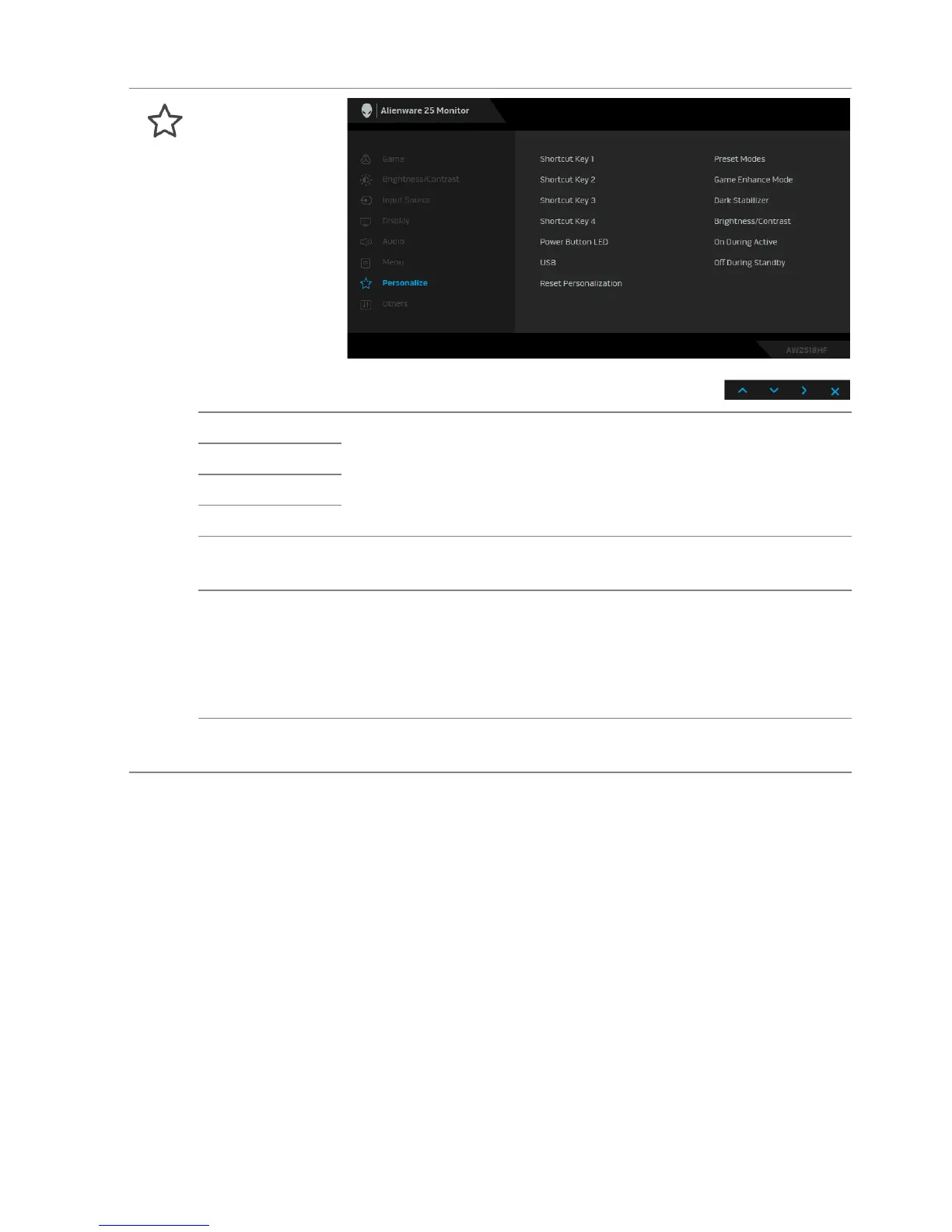 Shortcut Key 1 Allows you to choose a feature from Preset Modes, Game