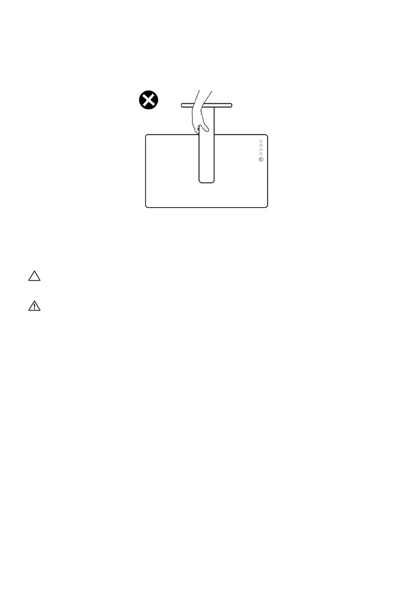 • When lifting or moving the monitor, do not turn the monitor upside down