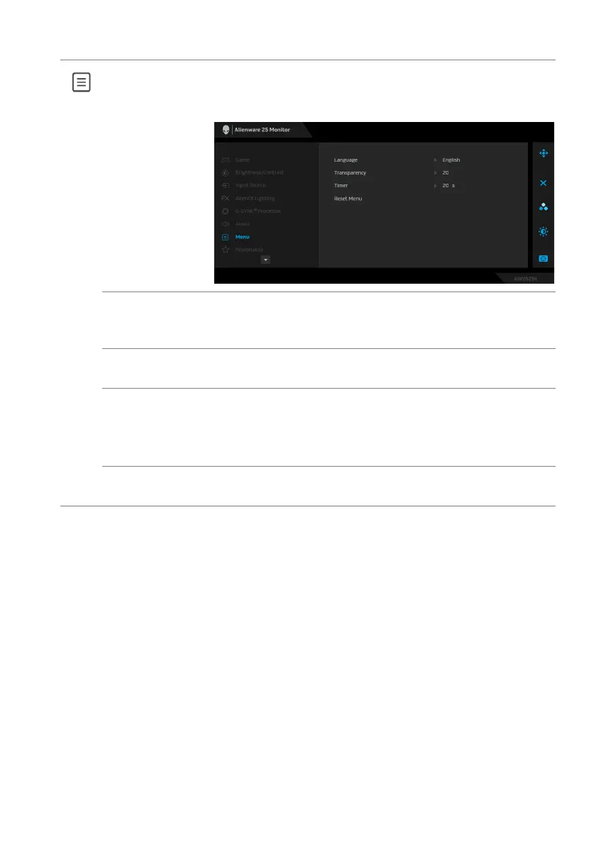 Timer Sets the length of time for the OSD to remain active