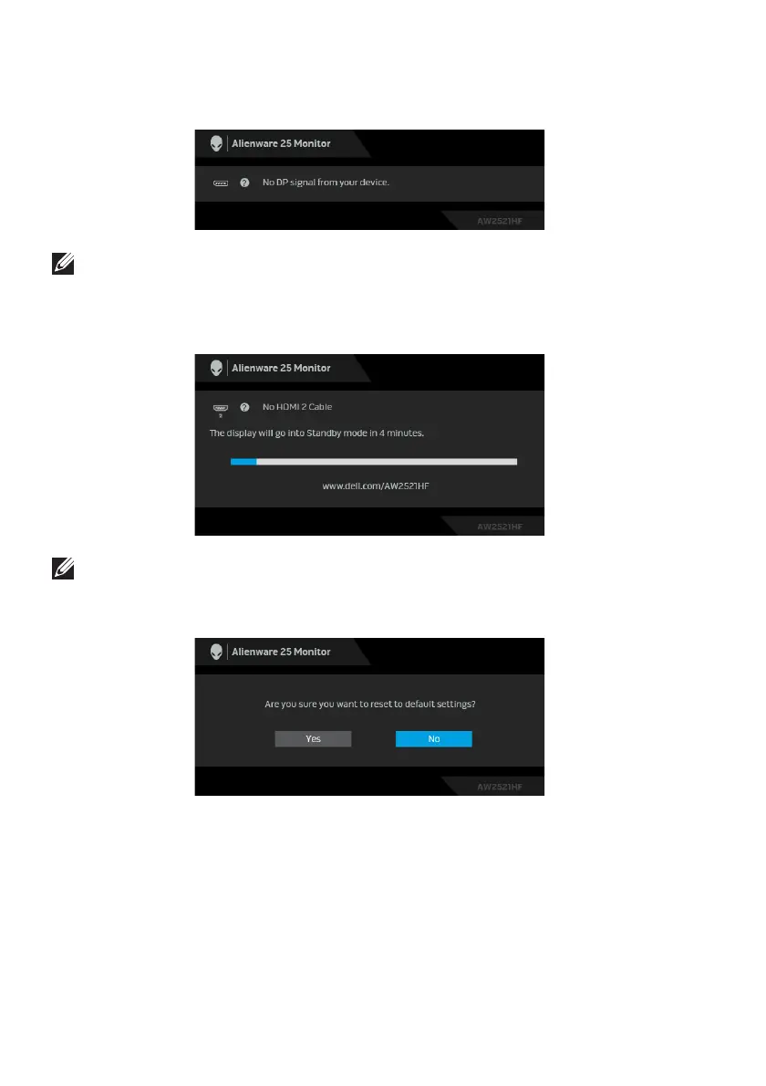 If either HDMI or DP input is selected and the corresponding cable is not