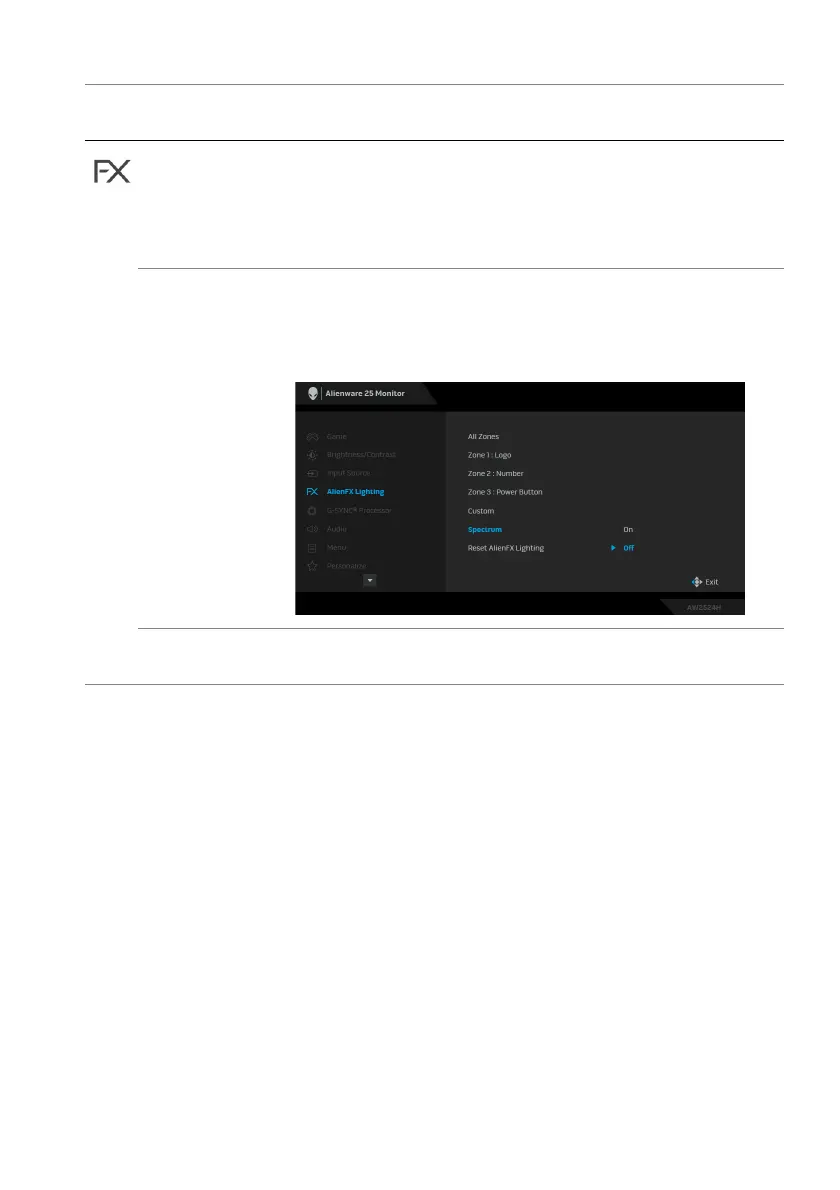 Resets all settings under the AlienFX Lighting menu to