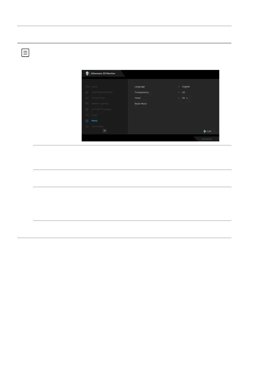 Menu Use this menu to adjust the settings of the OSD, such as,