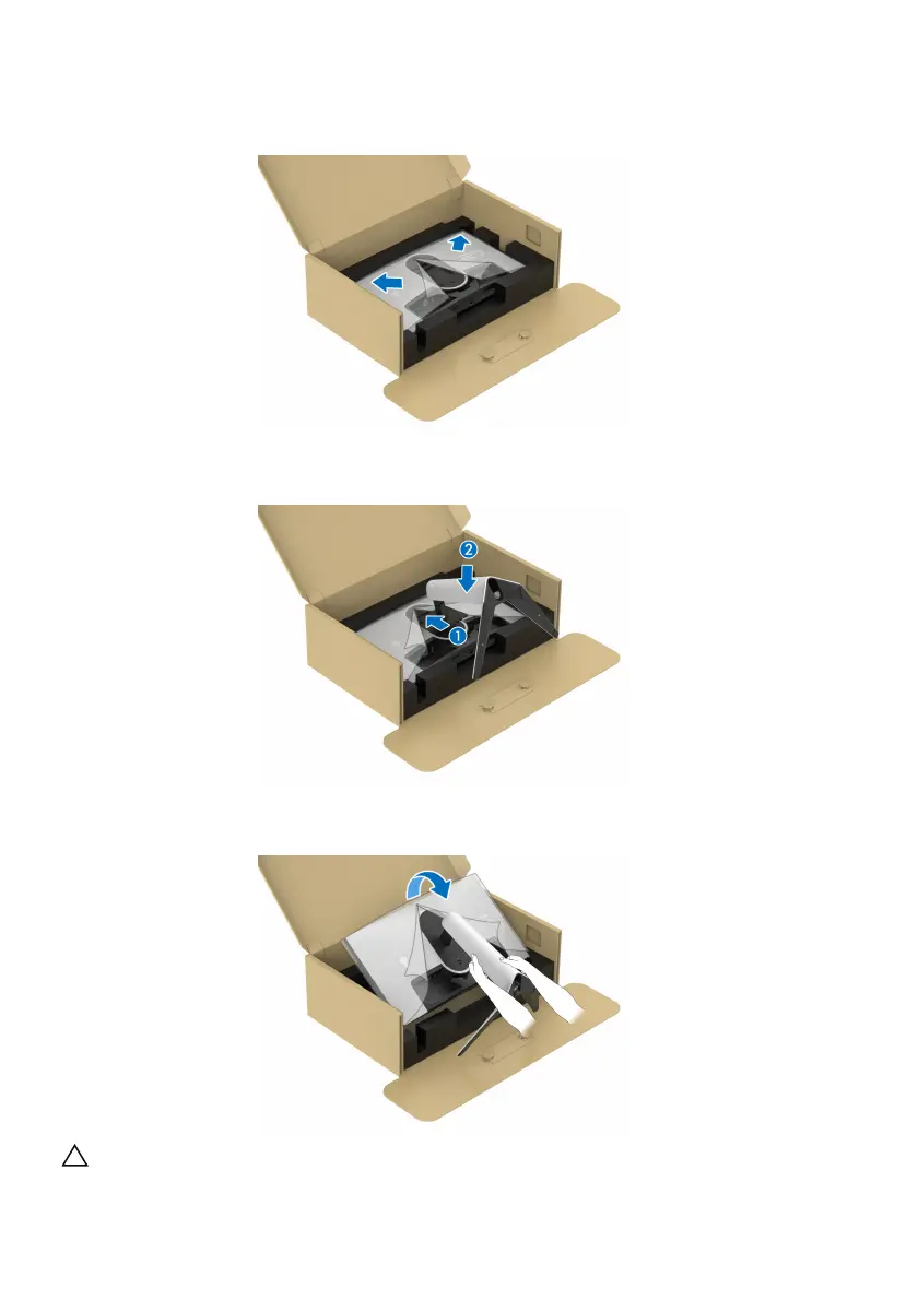 7. Hold the stand riser and lift the monitor carefully, then place it on a flat