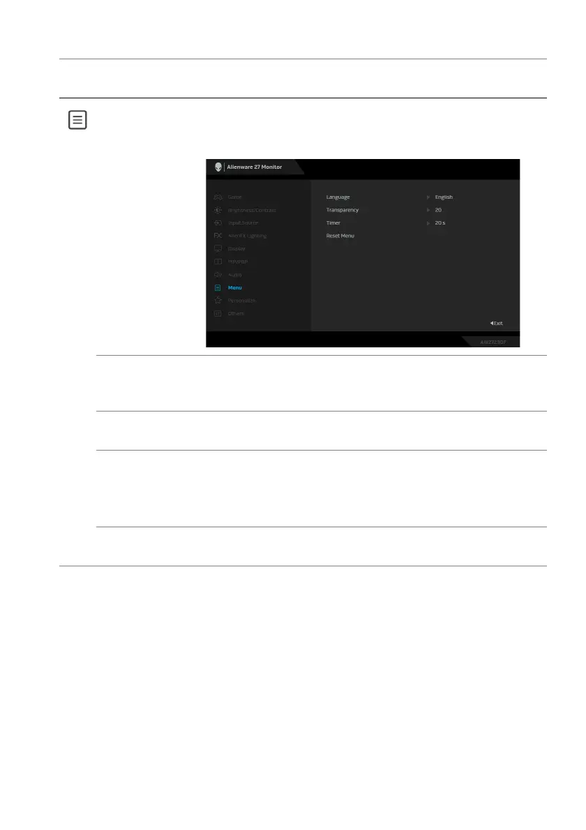 Menu Use this menu to adjust the settings of the OSD, such as,