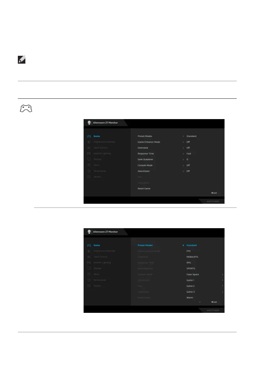 Game Use this menu to personalize your visual gameplay
