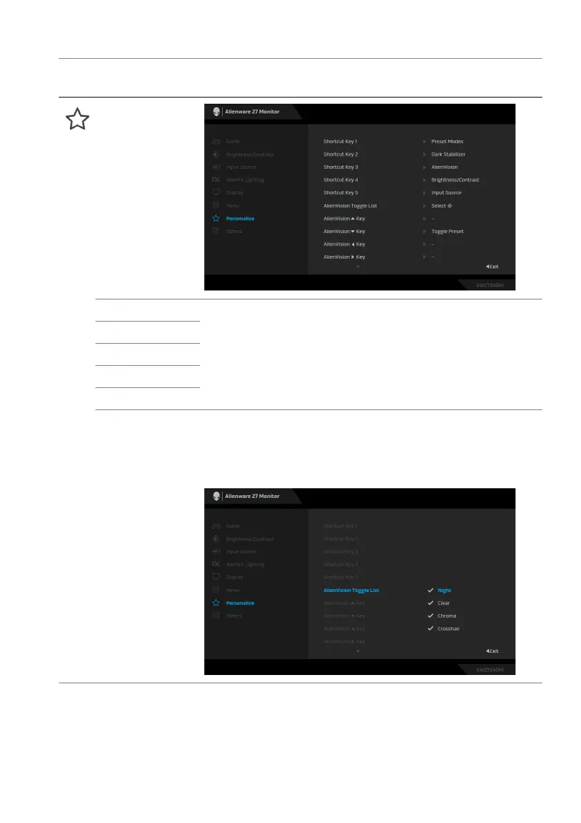 Shortcut Key 1 Allows you to choose a feature from the provided list