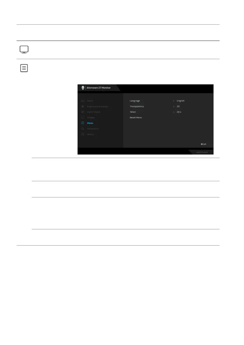 Timer Sets the length of time for the OSD to remain active