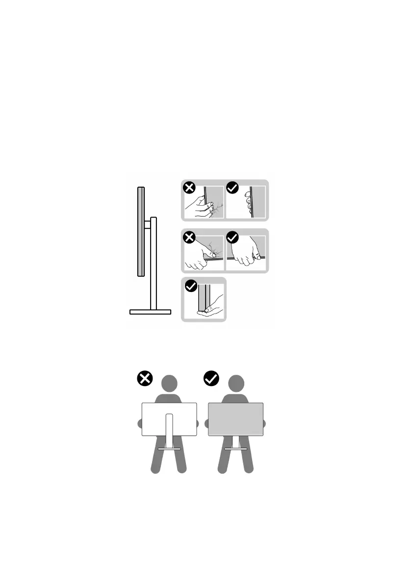 • When lifting or moving the monitor, ensure the screen is facing away from