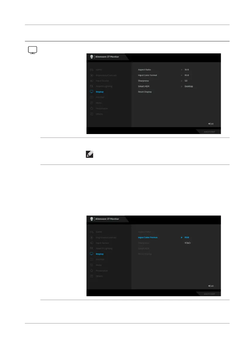 Aspect Ratio Adjusts the image ratio to 16:9, Auto Resize, or 4:3.