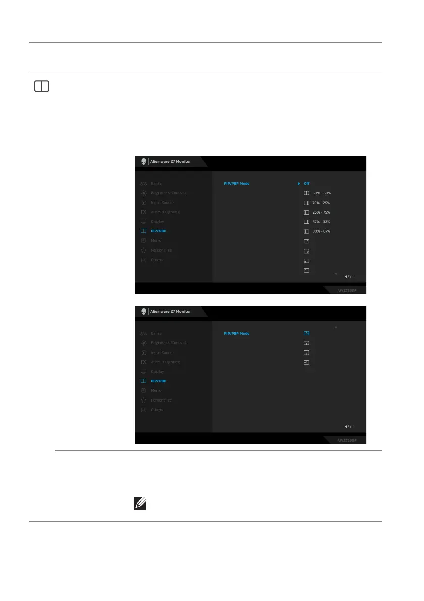 PIP/PBP Mode Allows you to choose a PBP or PIP mode from the