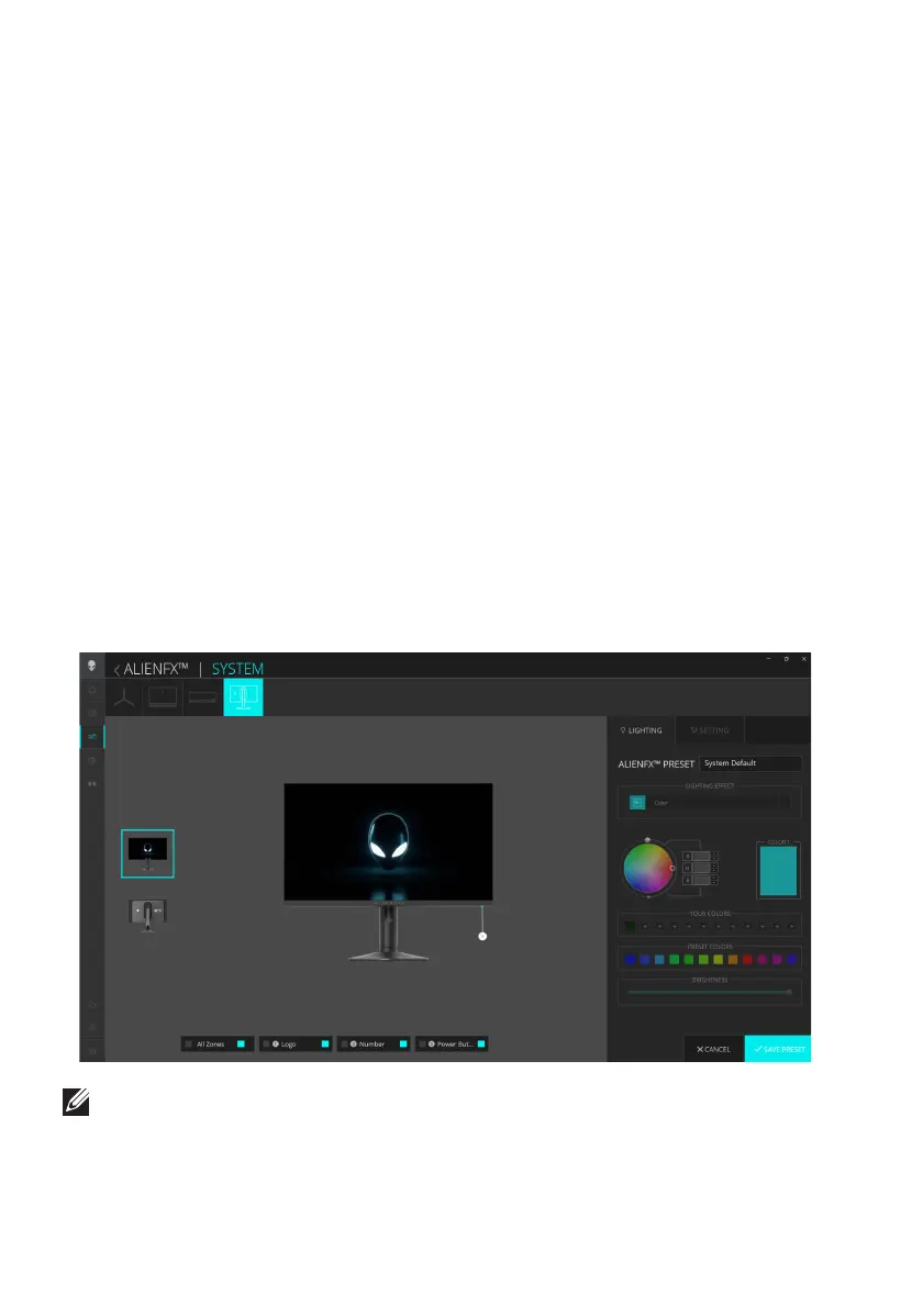 NOTE: The options displayed may vary depending on the lighting zone(s)