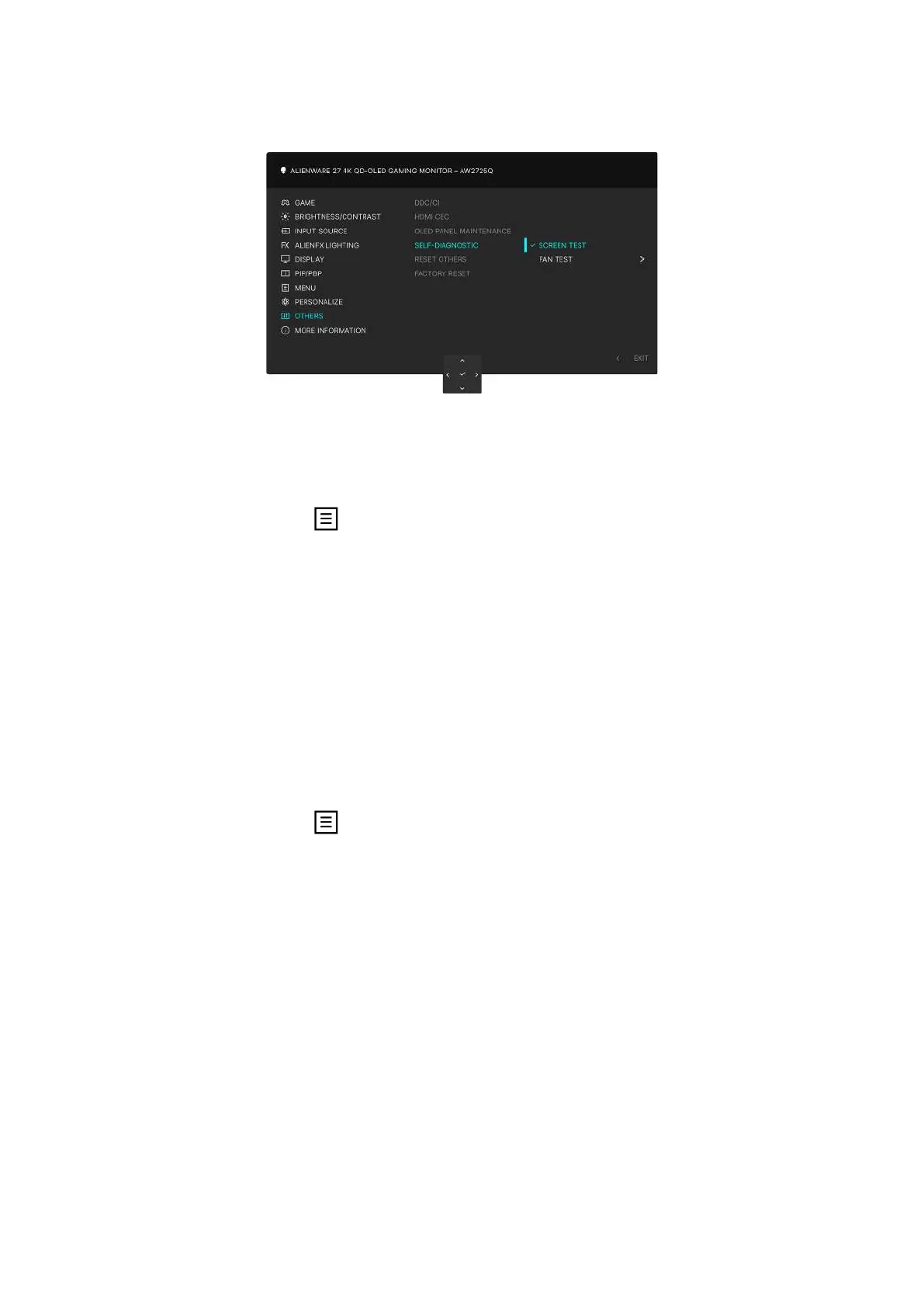 3. Using the joystick button, navigate on the OSD menu and select OTHERS > SELF-DIAGNOSTIC > FAN TEST.