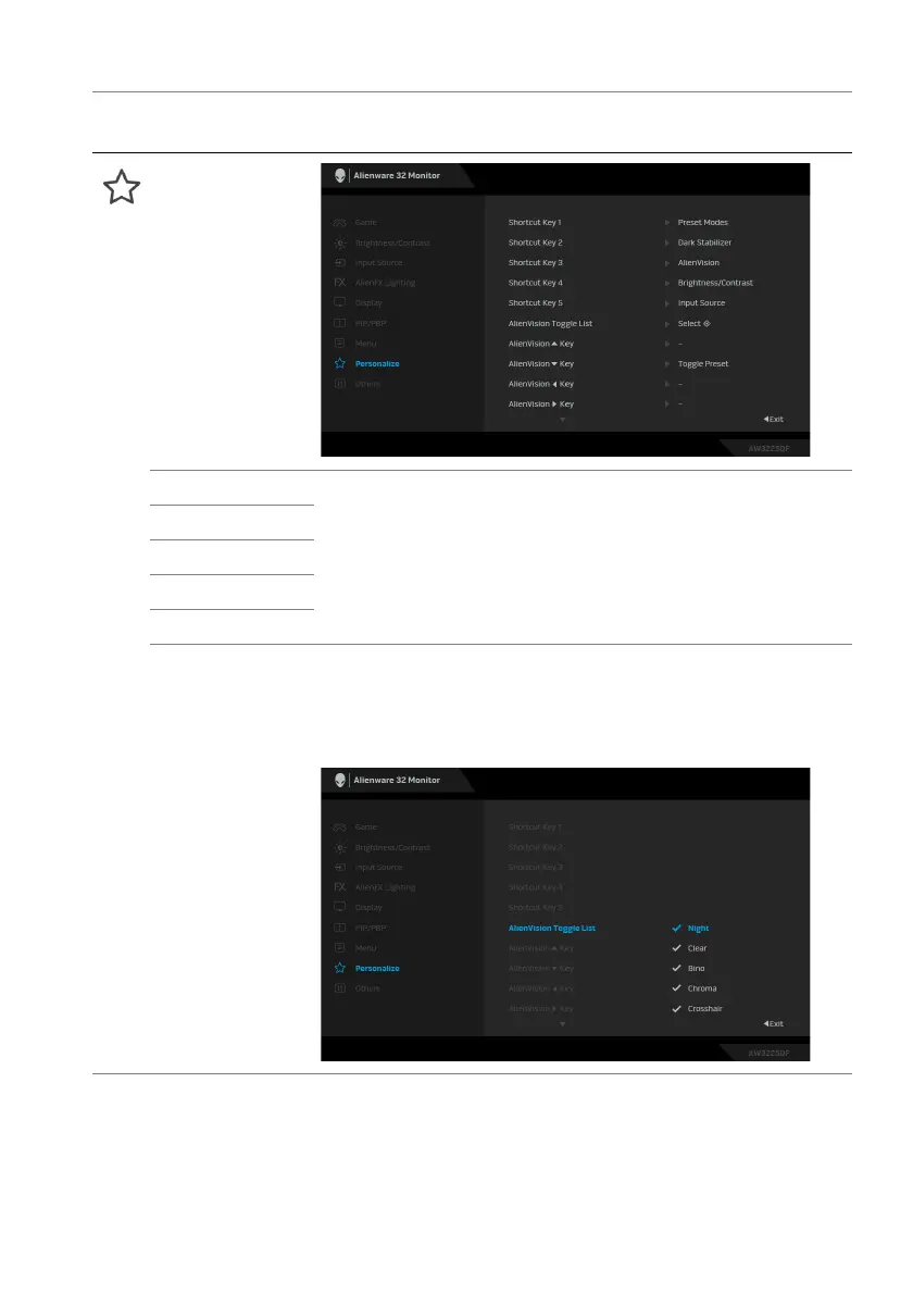Shortcut Key 1 Allows you to choose a feature from the provided list