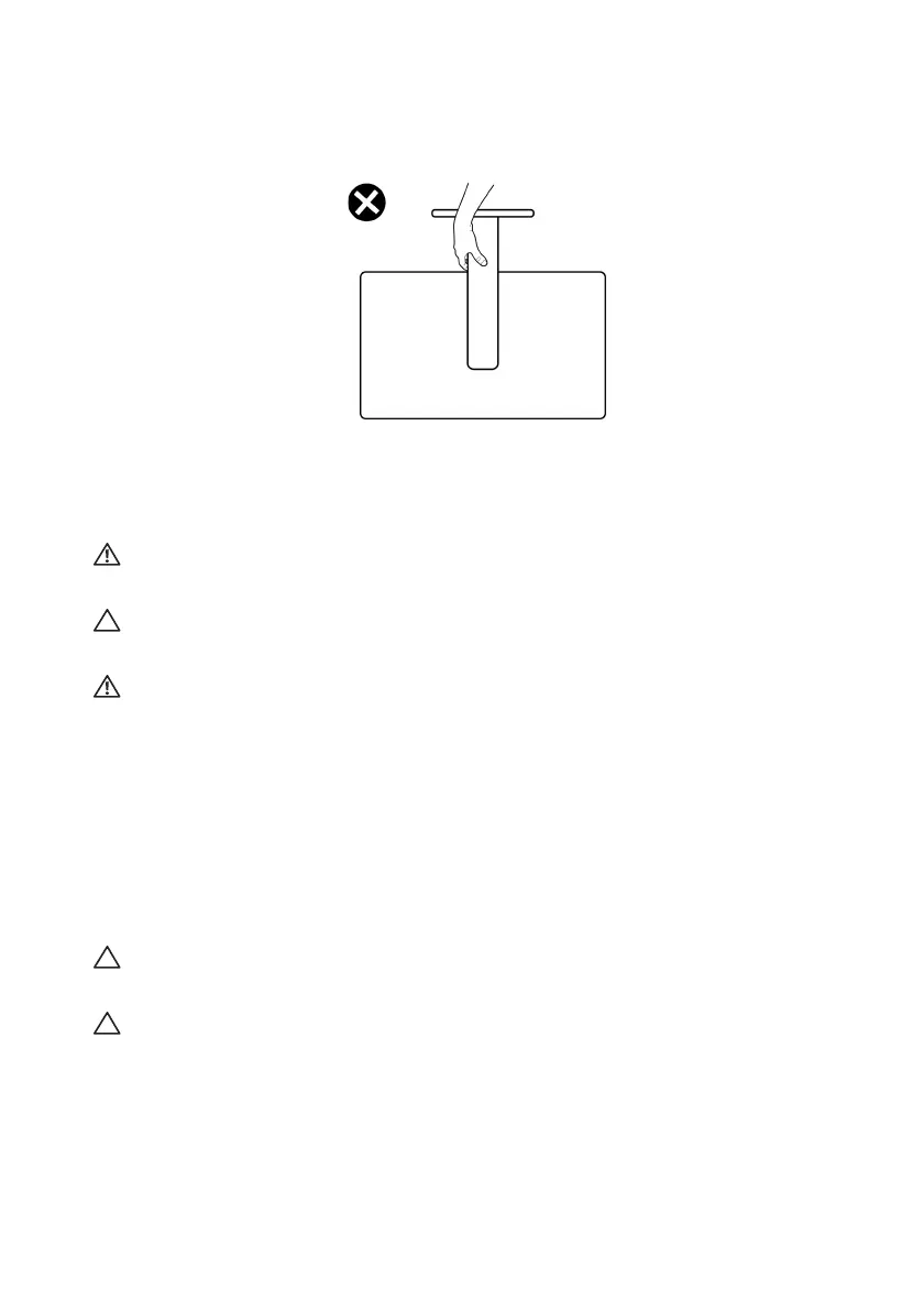 • When lifting or moving the monitor, do not turn the monitor upside down