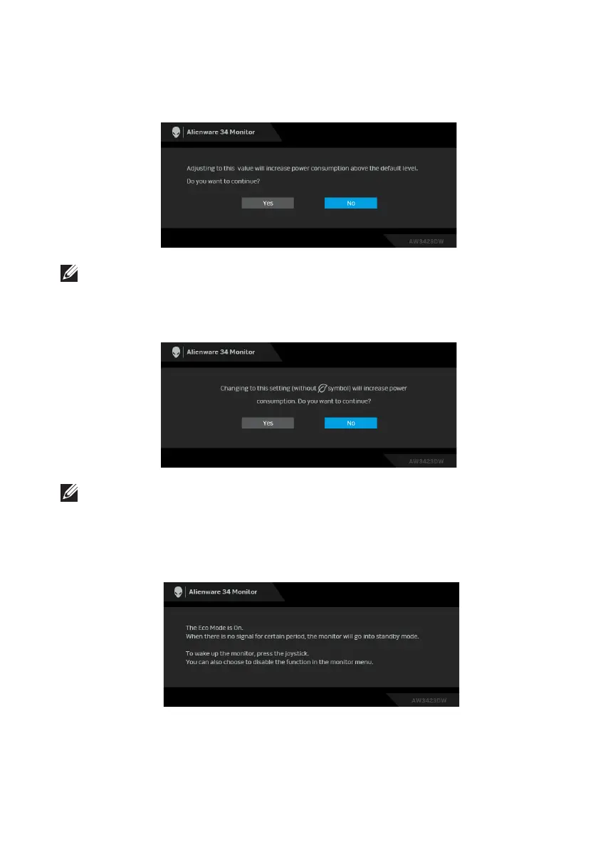 such as Eco Mode or Preset Modes, the following message appears: