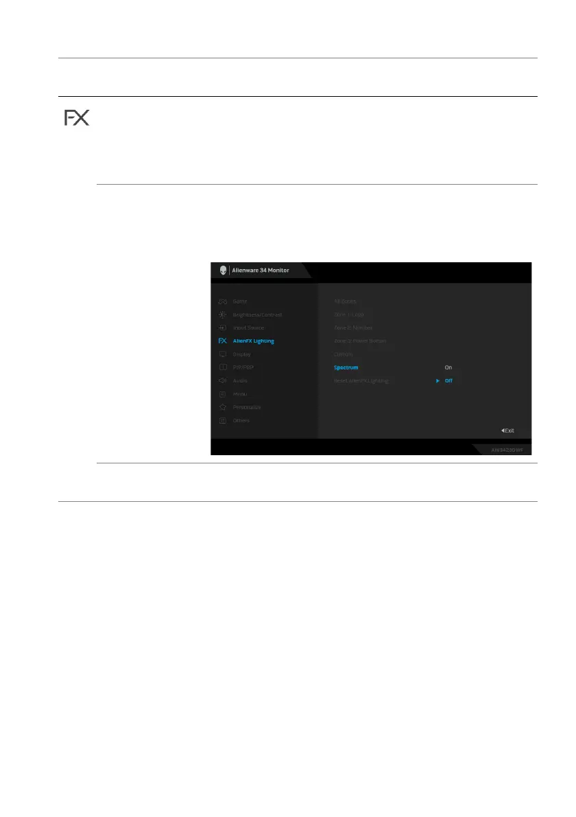 Resets all settings under the AlienFX Lighting menu
