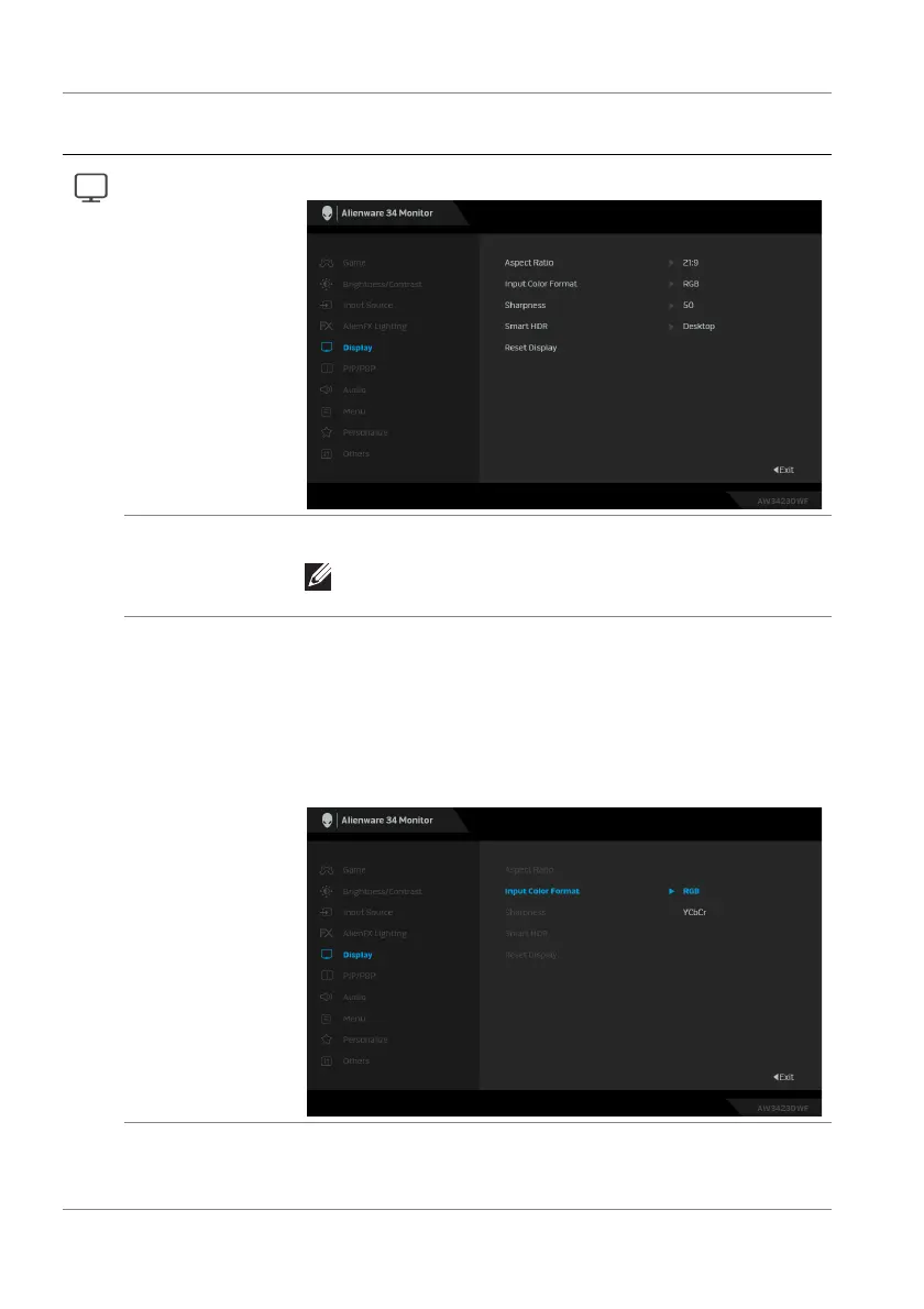 Aspect Ratio Adjusts the image ratio to 21:9, Auto Resize, or 4:3.