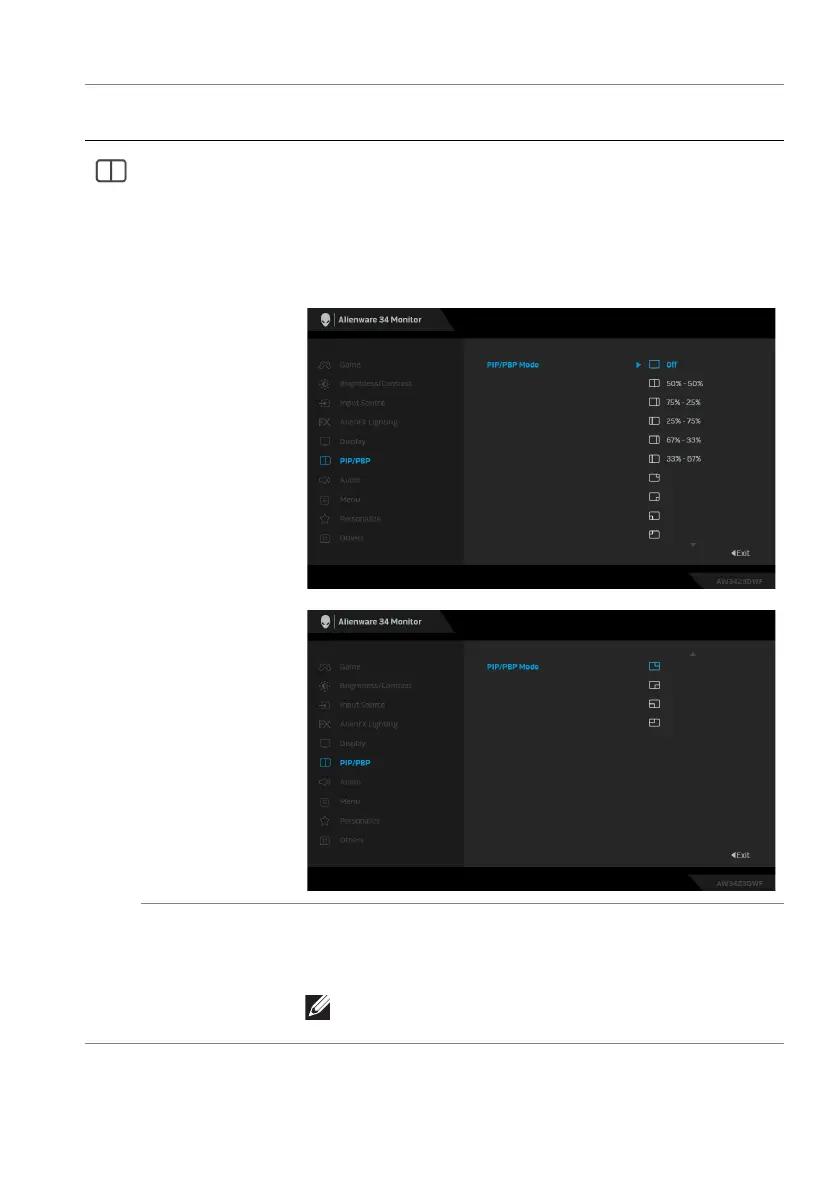 PIP/PBP Mode Allows you to choose a PBP or PIP mode from the