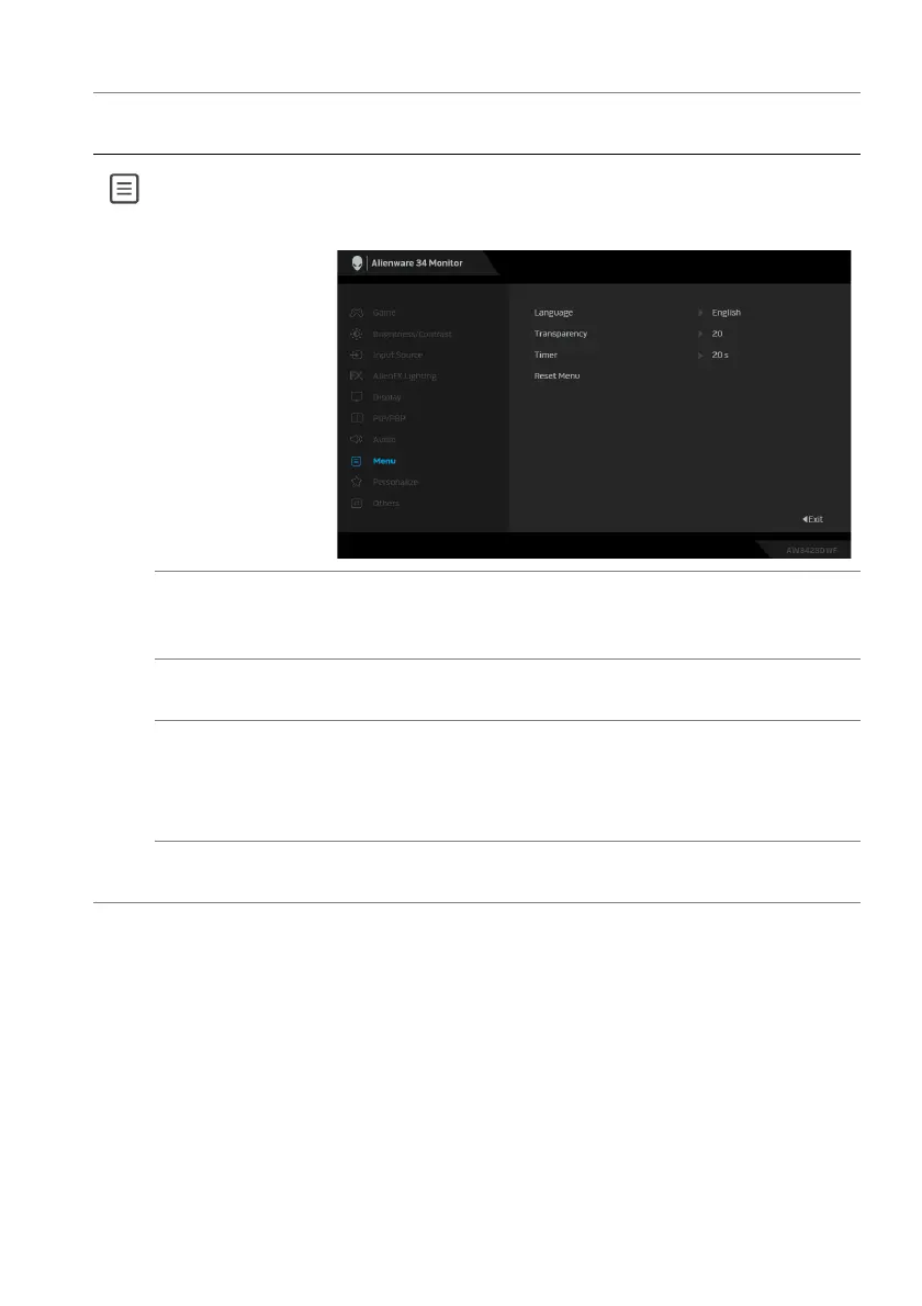 Menu Use this menu to adjust the settings of the OSD, such