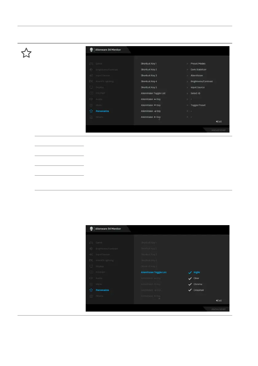 Shortcut Key 1 Allows you to choose a feature from the provided list