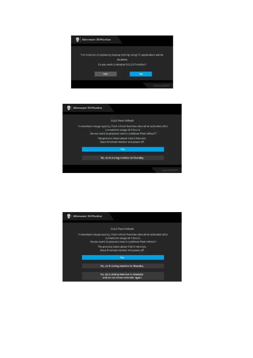 Once you select Yes, the monitor will be turned off and the refresh process will