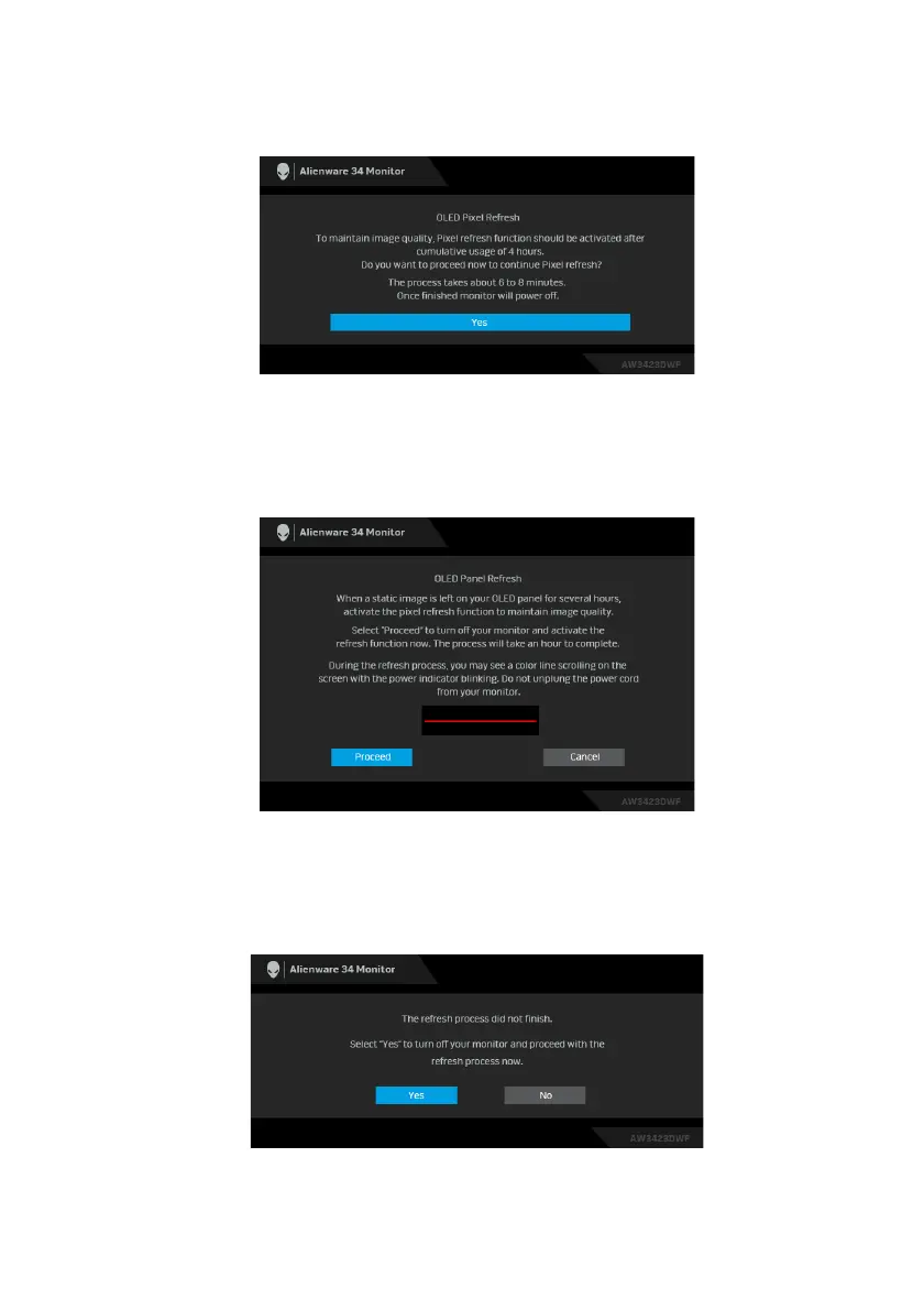 When the monitor is turned on after 20 hours of cumulative usage, the Pixe