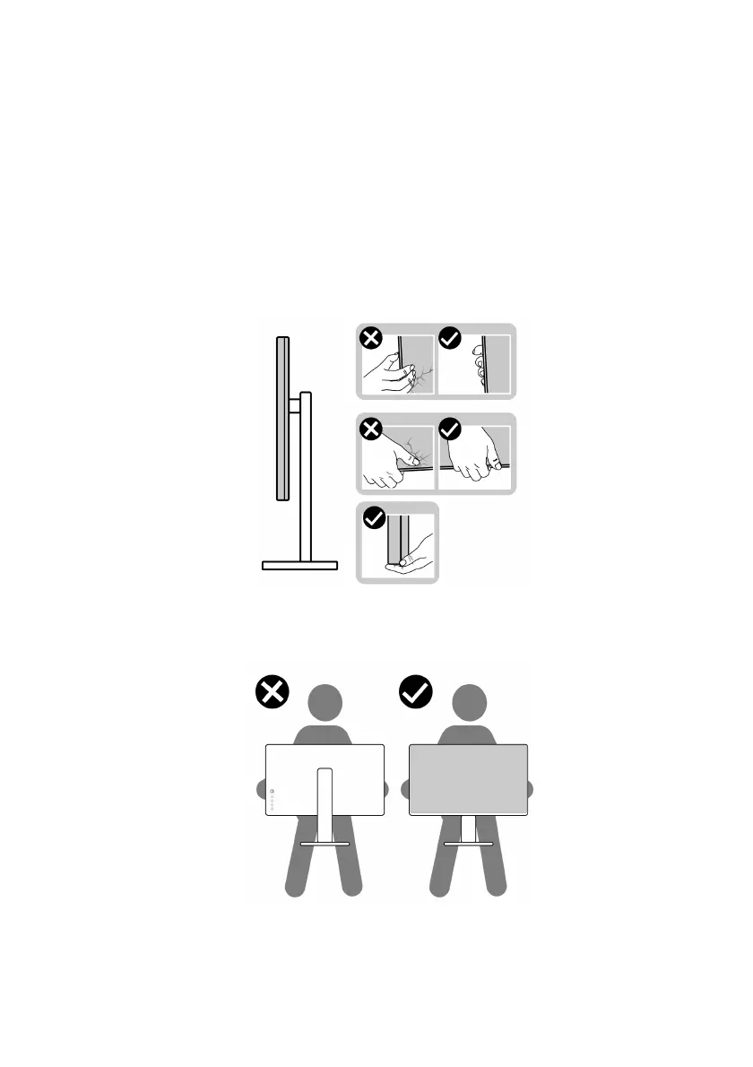• When lifting or moving the monitor, ensure the screen is facing away from
