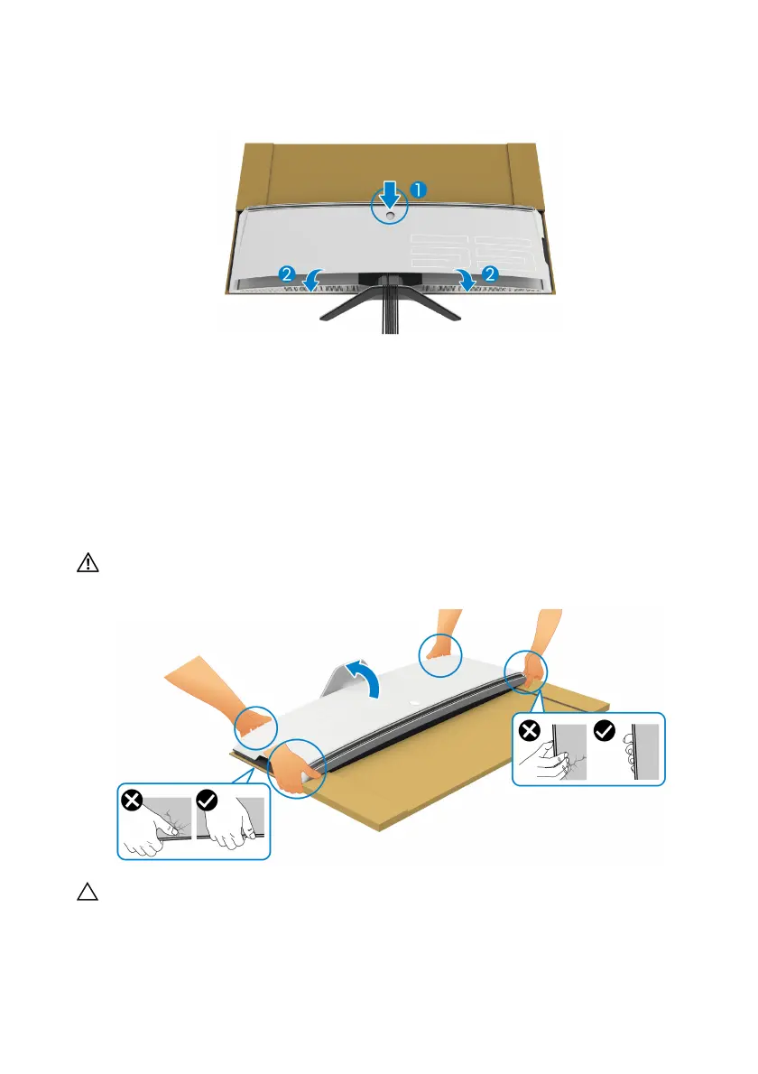 ith your partner, use a hand to hold the bottom edge of the monitor, as