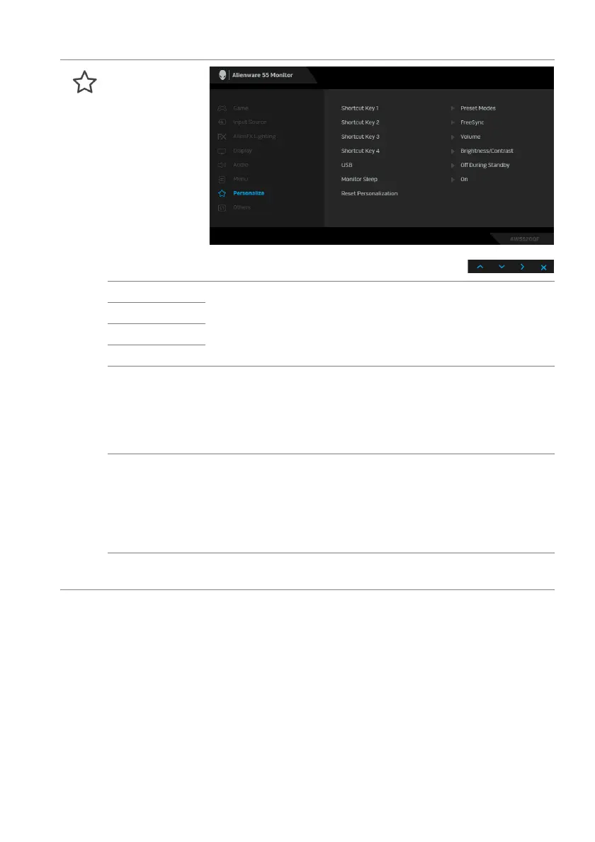 Shortcut Key 1 Allows you to choose a feature from Preset Modes, Game
