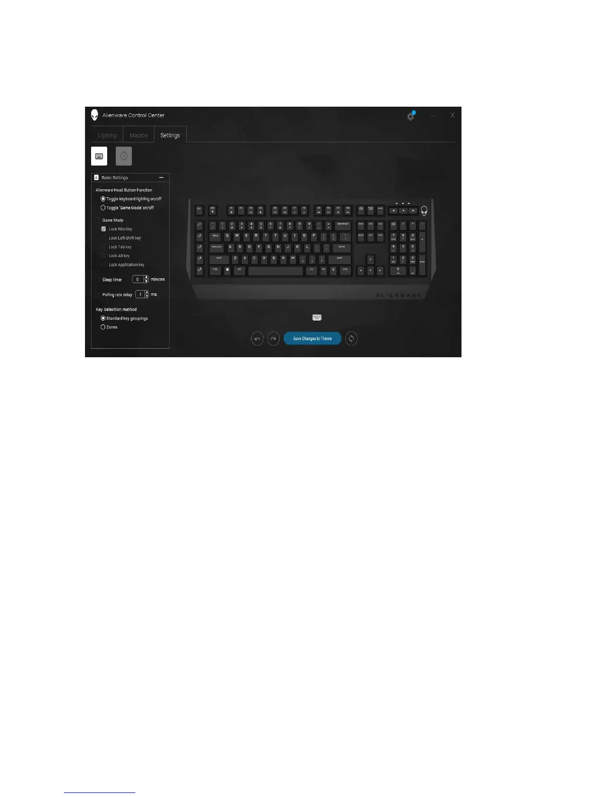 The Settings tab allows you to change the basic settings for your keyboard.