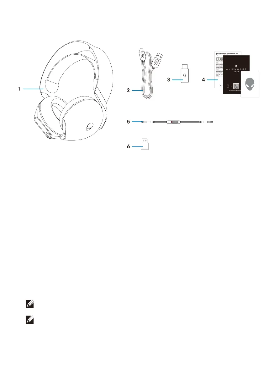 1 Alienware Dual Mode Wireless Gaming Headset AW720H 2 USB-A to USB-C charging cable