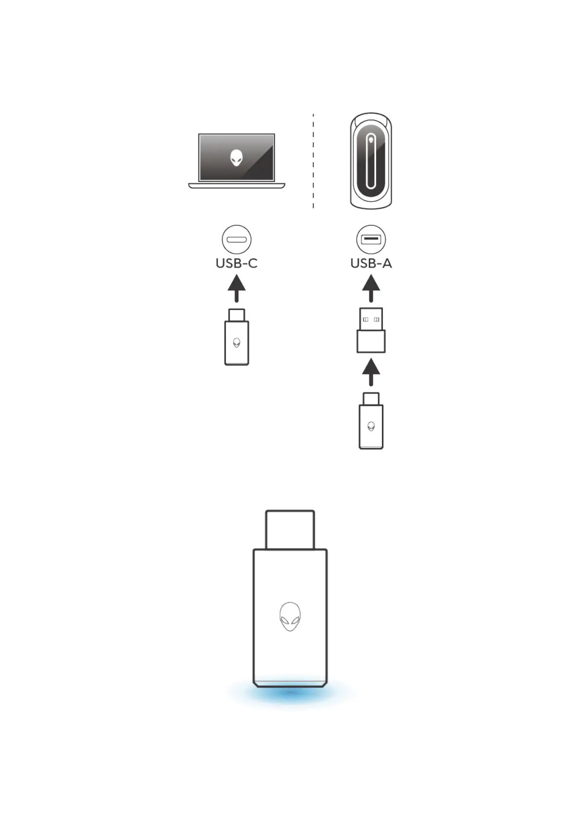 dogle into the USB-A to USB-C adapter, then connect the adapter into the USB port on your computer.