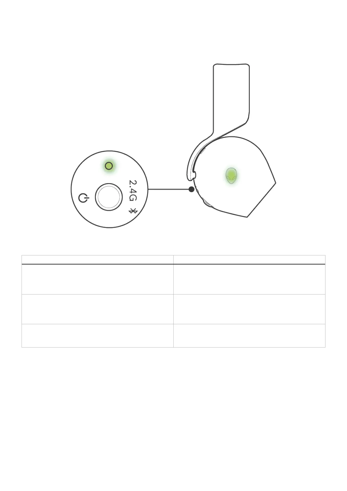 Fully charged Power on: The power LED stays green, and Alien head LED