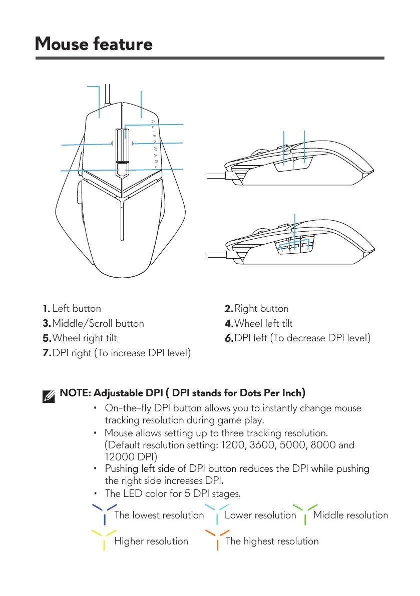 • The LED color for 5 DPI stages.