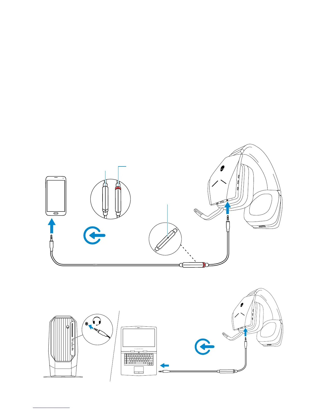 Connect one end of the audio cable to the 3.5 mm audio port on your headset,