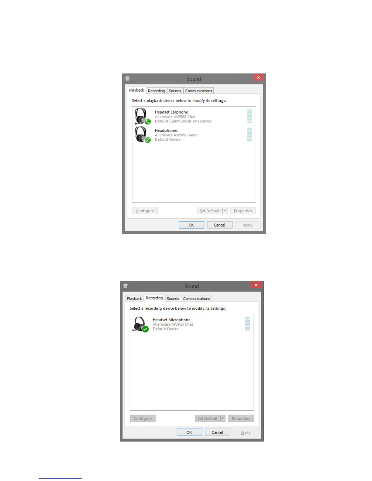 3 Click the Recording tab, set the Alienware AW988 Chat as the Default