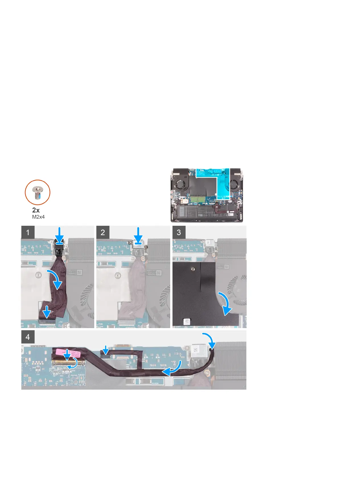 3. Peel the display cable from the system board and remove the display cable from the slot on the system board.