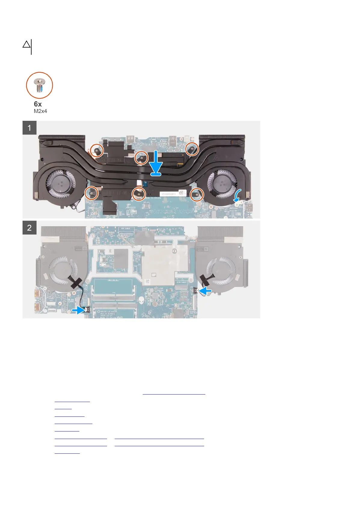 3. Replace the six screws (M2x4) that secure the heat-sink assembly to the system board.