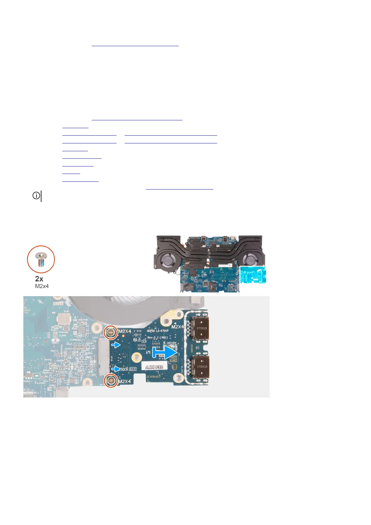 2. Remove the two screws (M2x4) that secure the USB board to the system board.