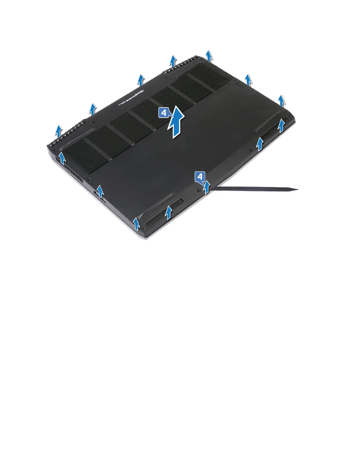 4 Rotate the base cover from front to back and remove the base cover o the palm-rest assembly.