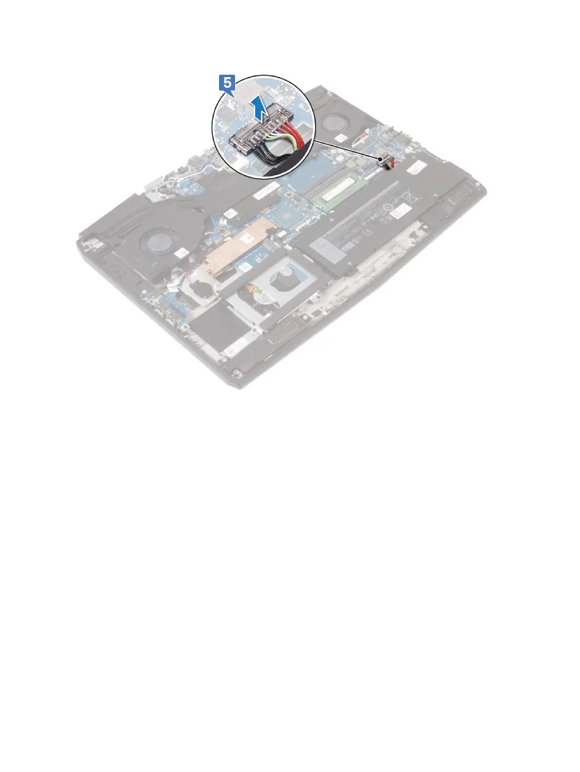 5 Using the pull tab, disconnect the battery cable from the system board.