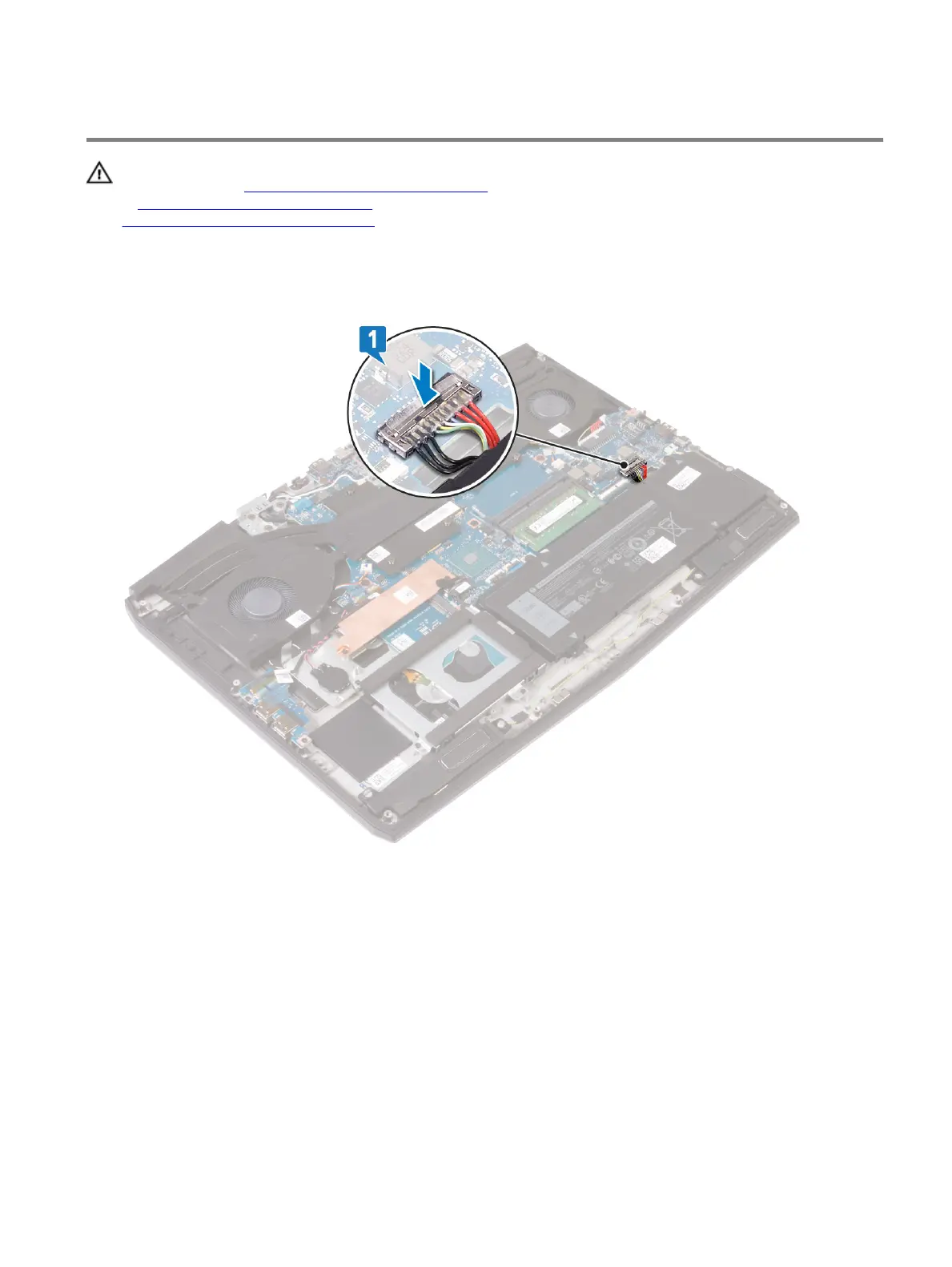1 Connect the battery cable to the system board.