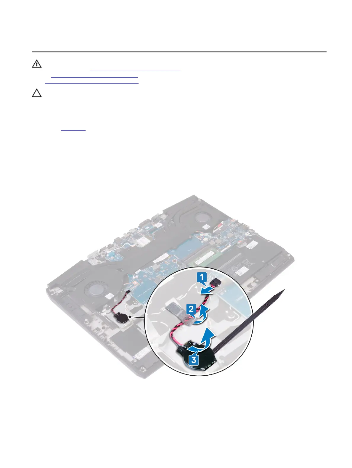 3 Peel the coin-cell battery o the palm-rest assembly.