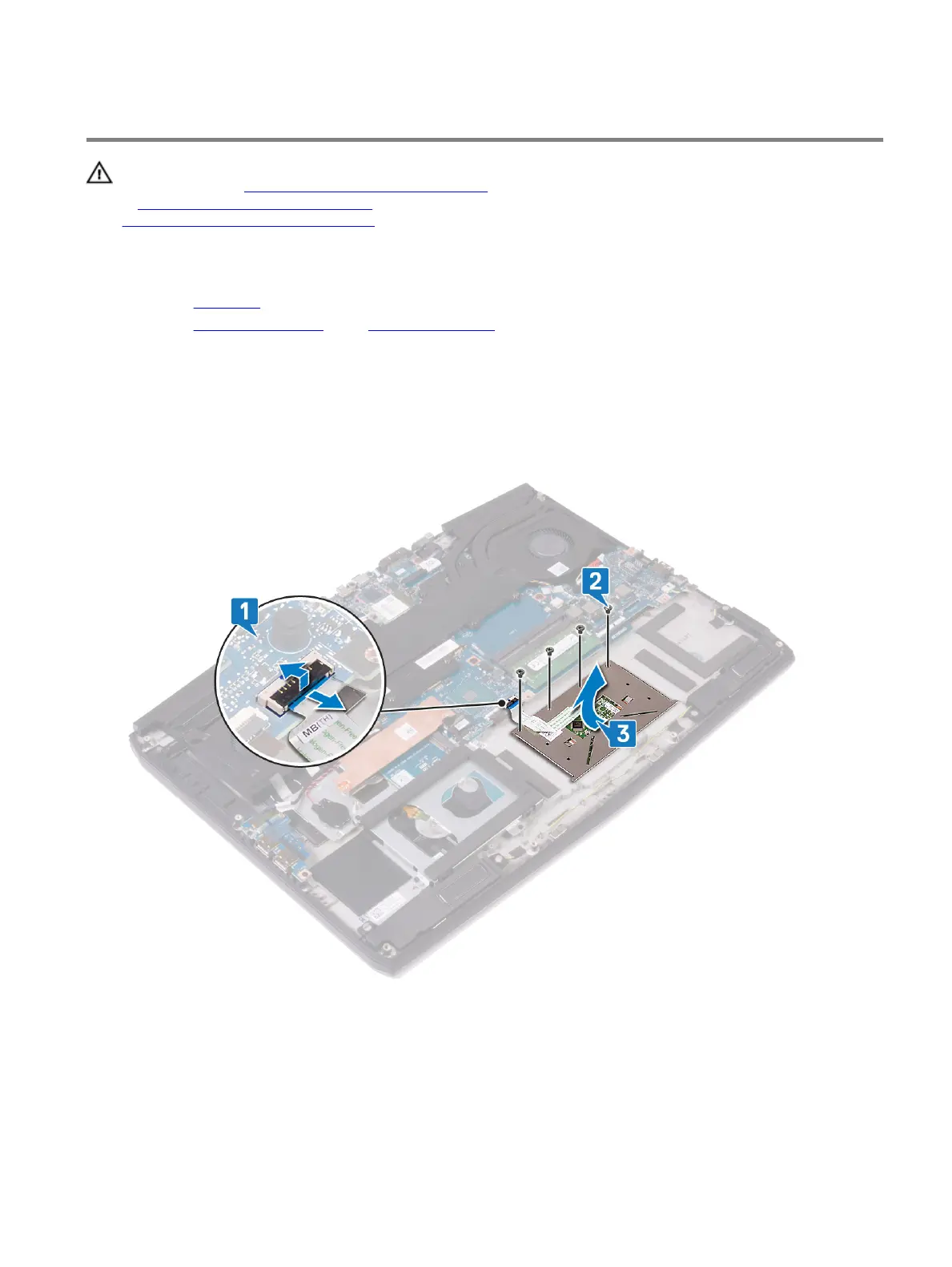 1 Open the latch and disconnect the touchpad cable from the system board.