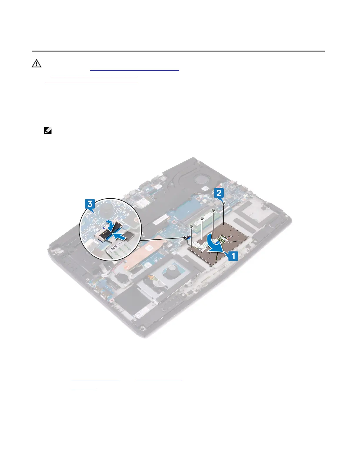 2 Replace the four screws (M2x2.5) that secure the touchpad to the palm-rest assembly.