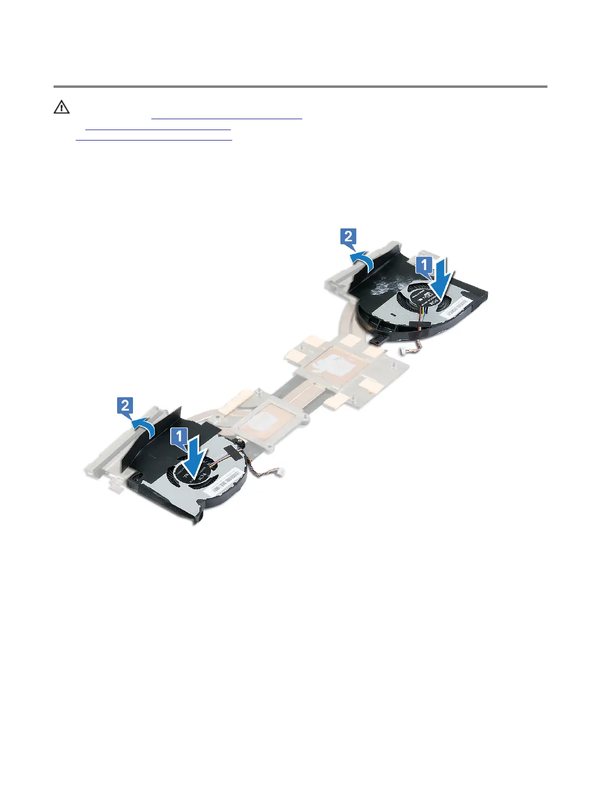 1 Place the fans on the heat sink and align the screw holes on the fans to the screw holes on the heat sink.