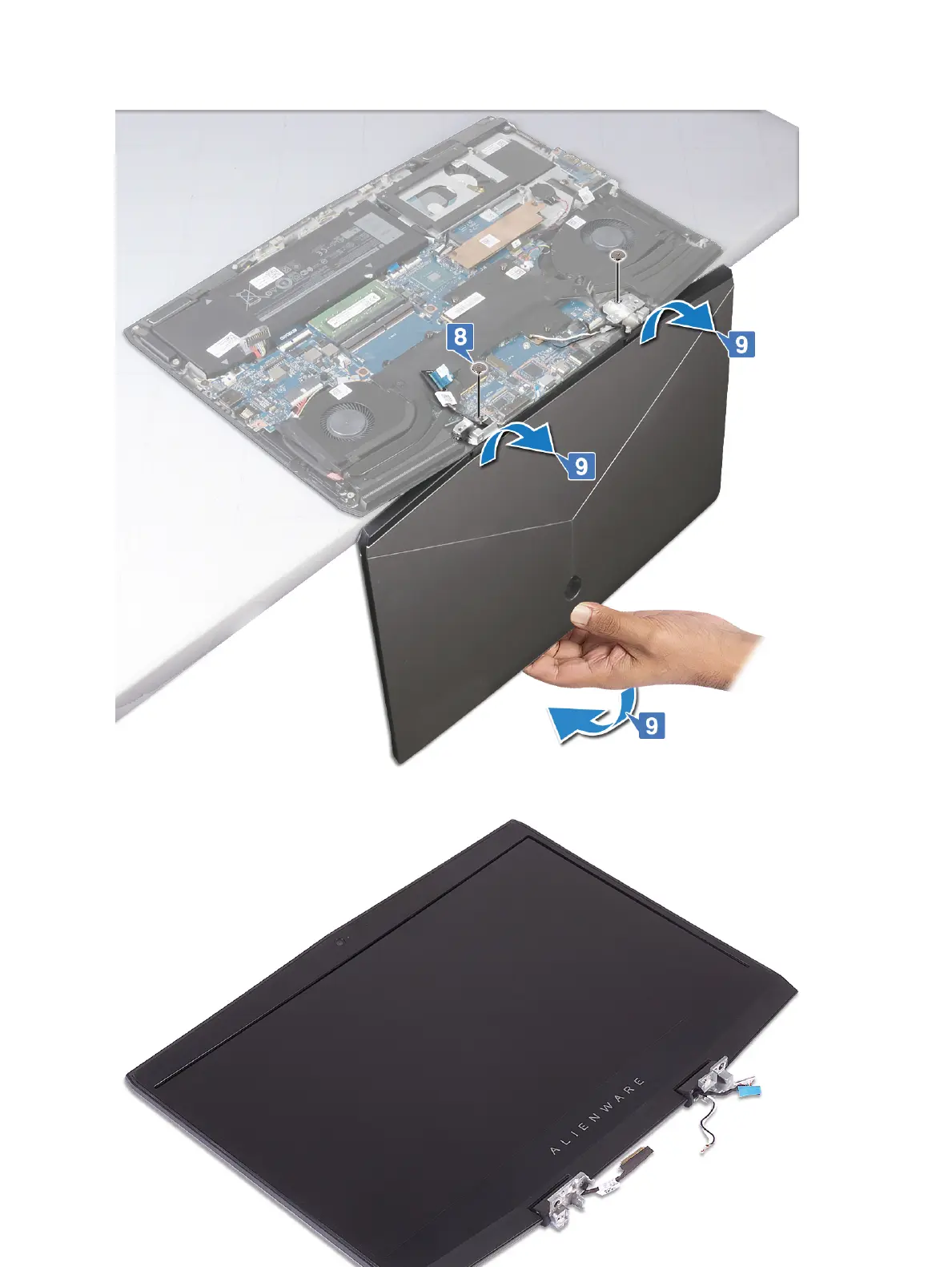 9 Rotate the display assembly inward and lift up and away from the palm-rest assembly.