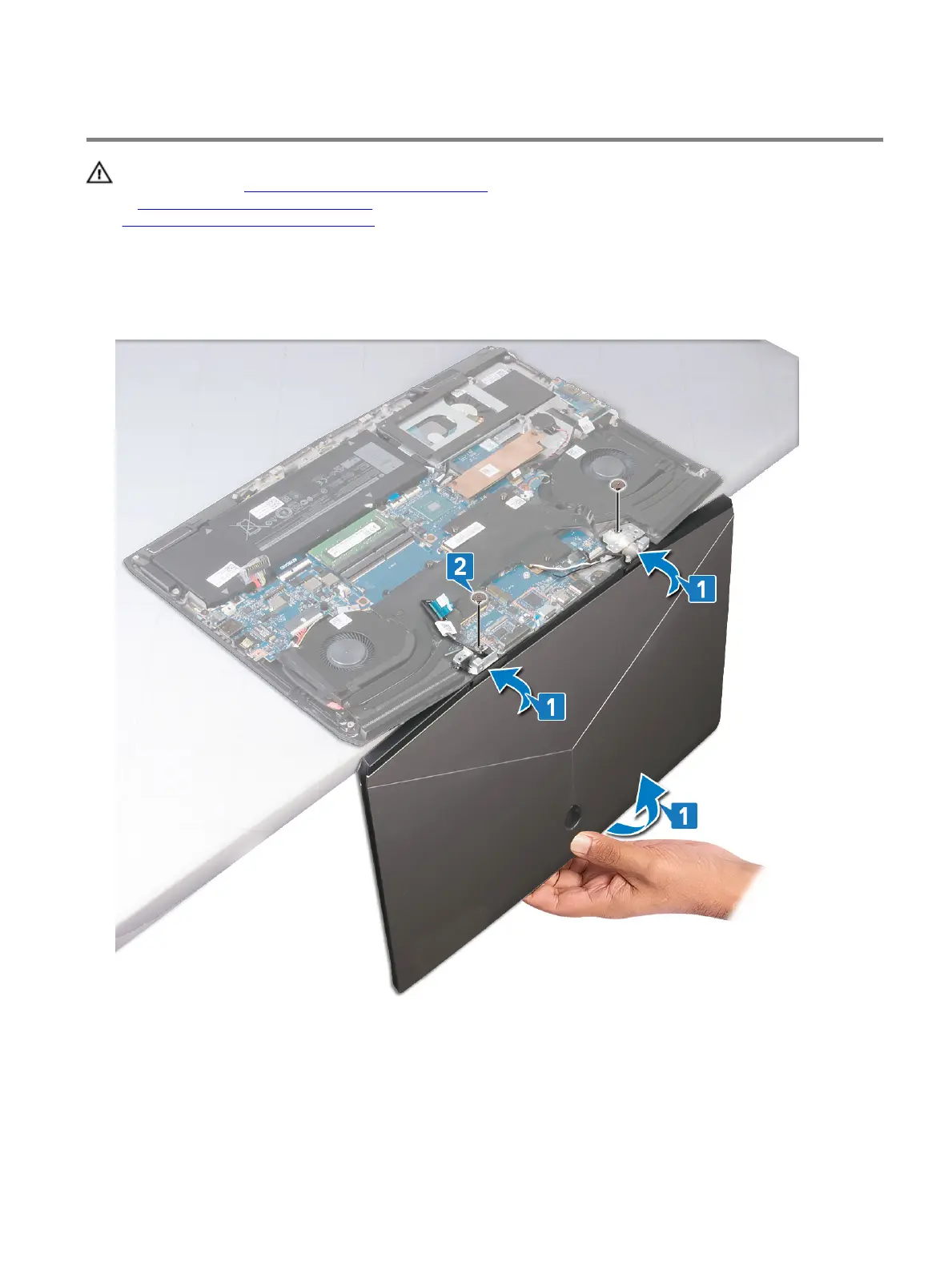 1 Open the hinges to 90 degree and place the display assembly on the palm-rest assembly by rotating outward.