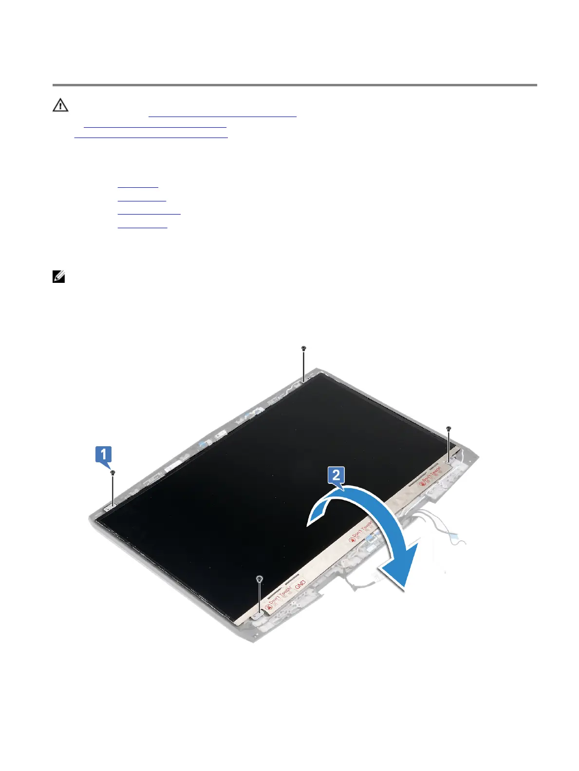 1 Remove the four screws (M2x3) that secure the display panel to the display back-cover and antenna assembly.