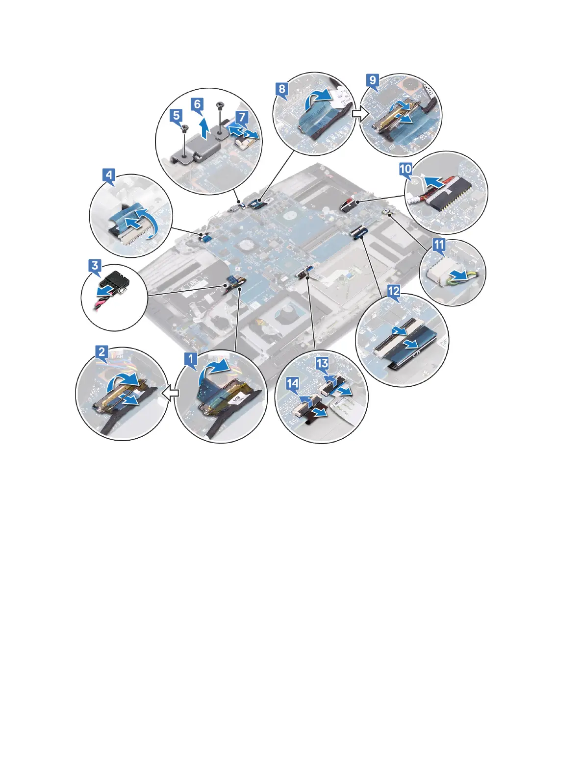 15 Remove the six screws (M2x3) that secure the system board to the palm-rest assembly.